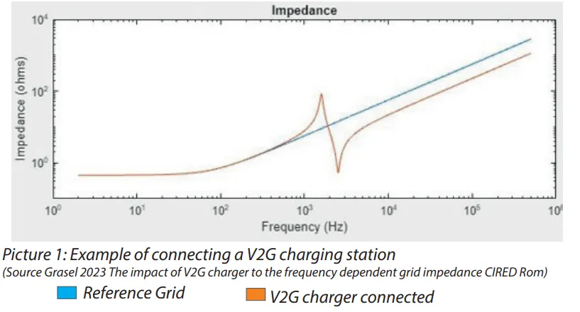 L’image ci-dessus illustre l’apparition de points de résonance lors du raccordement d’une station de recharge V2G. Remarque : même lorsque la station de recharge n’est pas en service, des points de résonance peuvent apparaître en raison du filtre d’entrée LCL.